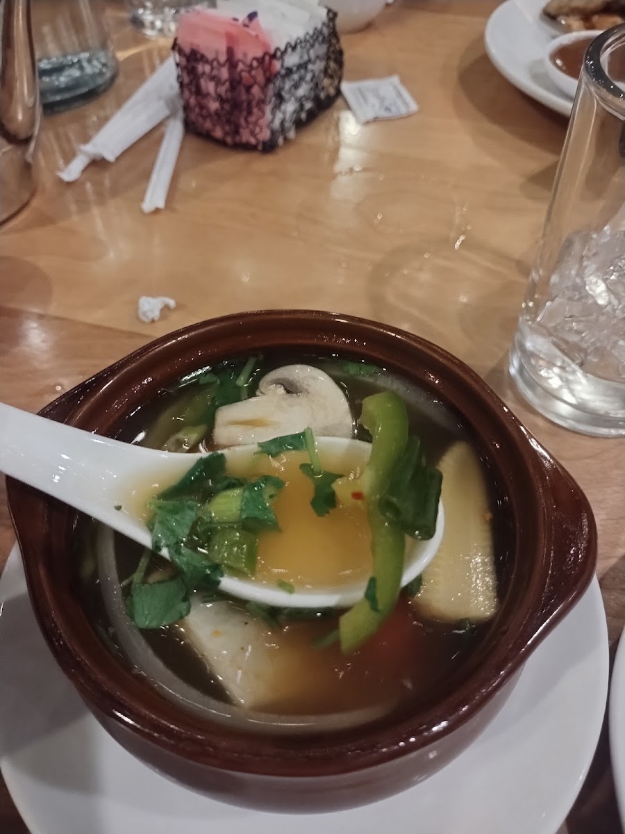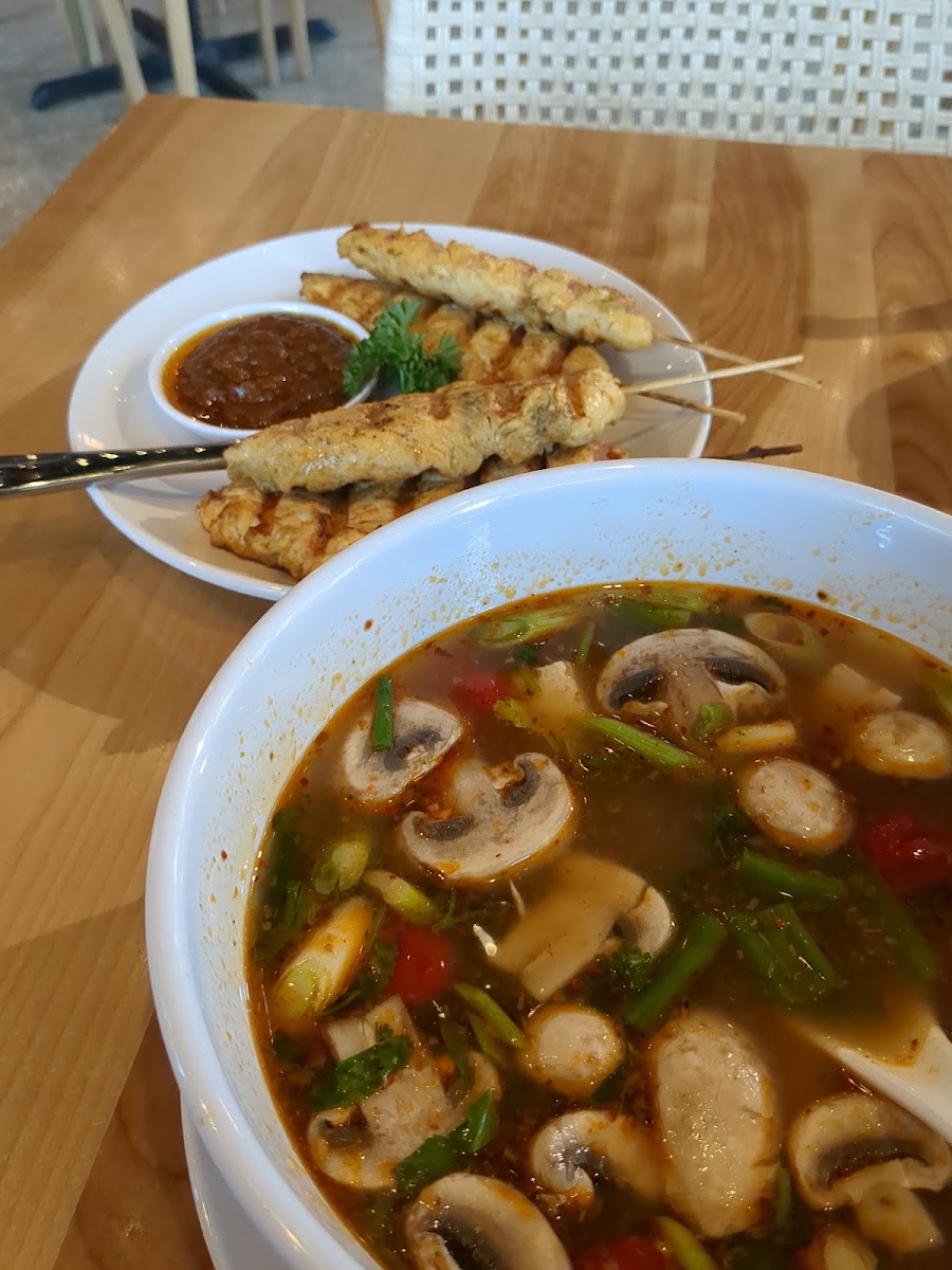 Nice location, food, service. I enjoyed trying a new Thai, and Yang from Gaylord, Mi recommended this restaurant to me while visiting there. Super great choice Yang! I enjoyed my drunken noodles with tofu (super good tofu). Will definitely visit again and try something different for the pallet. Thanks for a great experience. Also, the soup that accommodated the lunch was a special treat. I added fried dumplings to my order. A good portion for the money. Parking can be a bit challenging across the street so be prepared bto park elsewhere and walk.