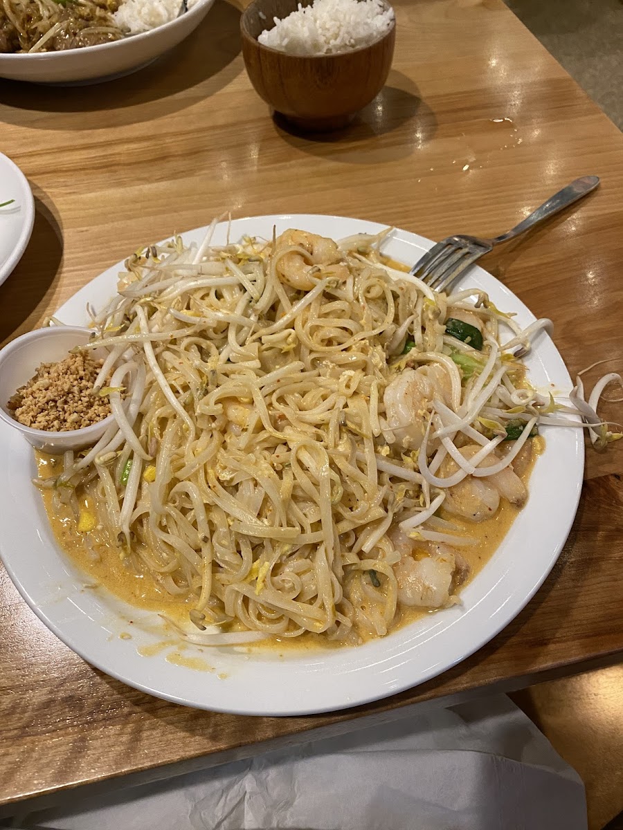 This restaurant is one of our favorite places to have dinner. It is excellent if you like Thai food, large menu with great choices, beautiful inside, open ceiling with nice open space, immaculately clean and the staff are all so pleasant and helpful answering questions. Husband and I both ordered one of their noodle dishes and we started with the fried dumplings with side sauce. I had Pad Thai Curry noodles with shrimp and hub had the Vonsen noodles with beef with a side of white rice. Our dinners were as usual, delicious and a generous portion. We had a great dinner and prices are reasonable for the food they serve you. Our waitress was great and took good care of us. Come to Wyandotte and try this place, it’s truly a real gem!!! A Debbie/ Riverview